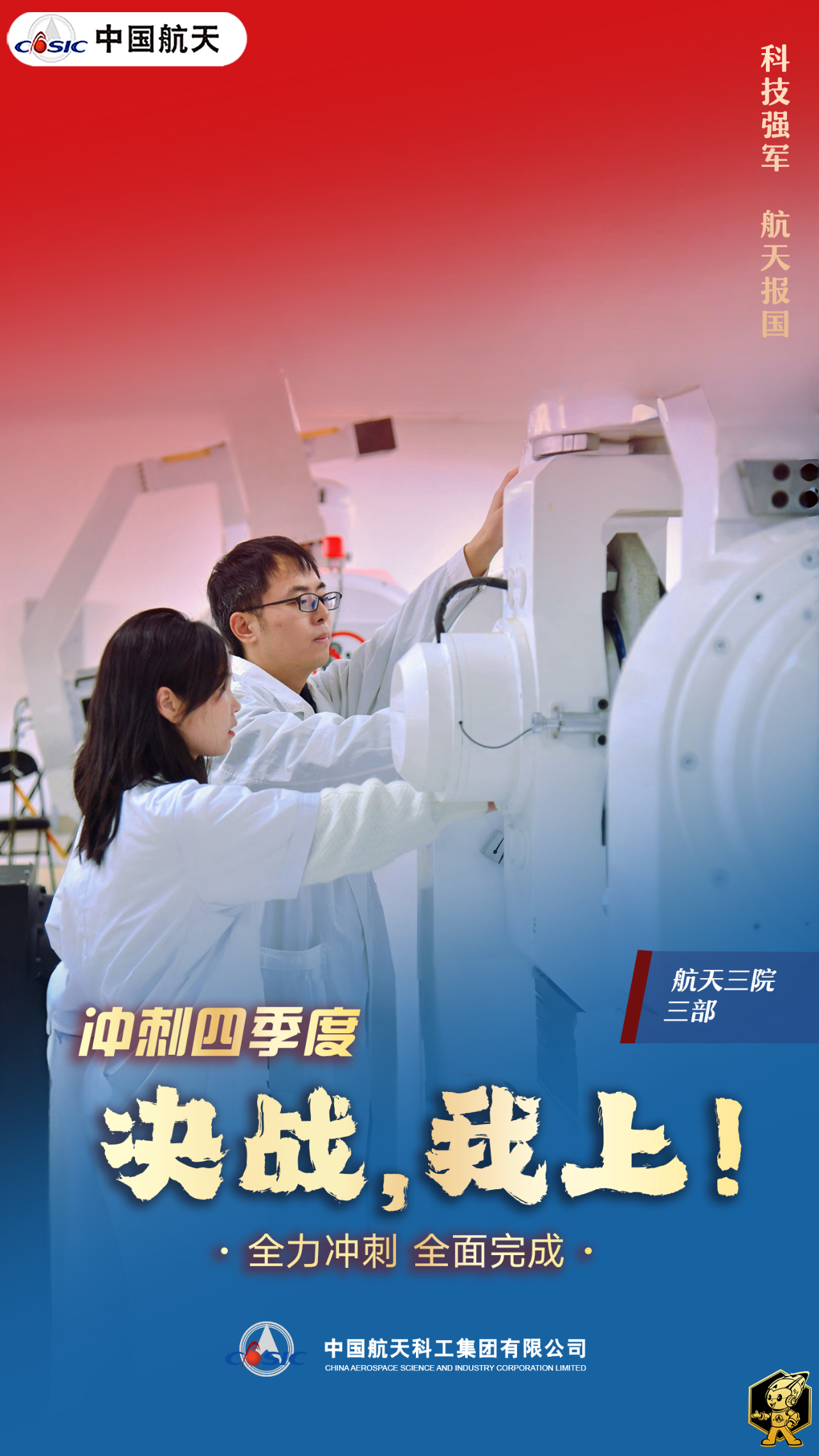 時間來到12月,決勝全年目標任務的“收官戰”進入最吃勁、最緊要的關頭。航天科工全體干部職工緊盯目標,面對困難、堵點,一鼓作氣,全速沖刺!今天,《沖刺瞬間》帶您走進科研生產一線,感受航天科工“戰士們”奮力拼搏的壯志豪情!