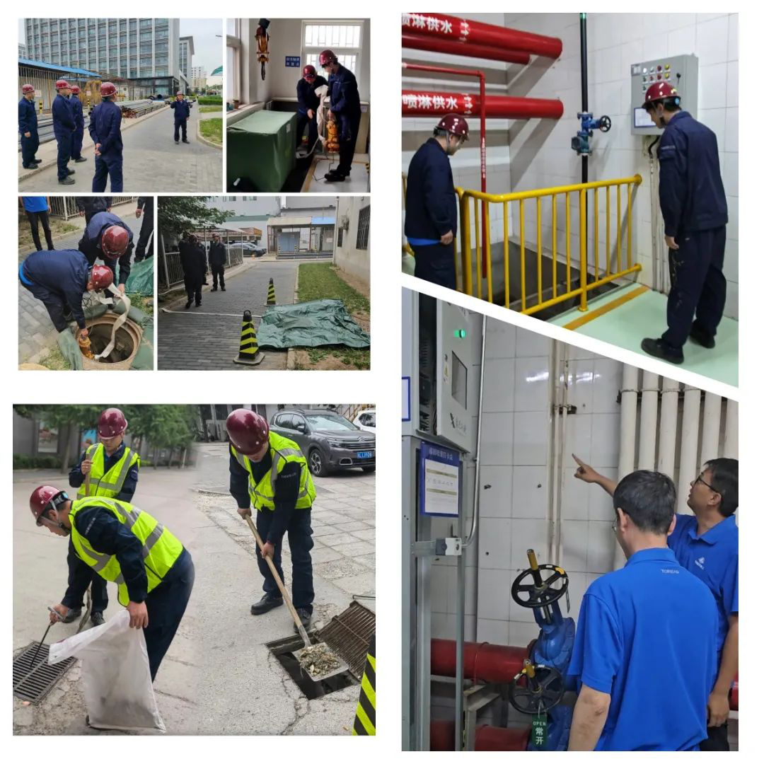 院本部組織物業公司調整補充防汛班組,加強防汛知識及物資設備使用培訓,在汛期前完成了防汛預案演練,疏通清淤排水管道,對存在滲漏風險的部位進行了防水處理,及時清點補充防汛物資,對重點部位加大檢查力度,確保安全度汛。