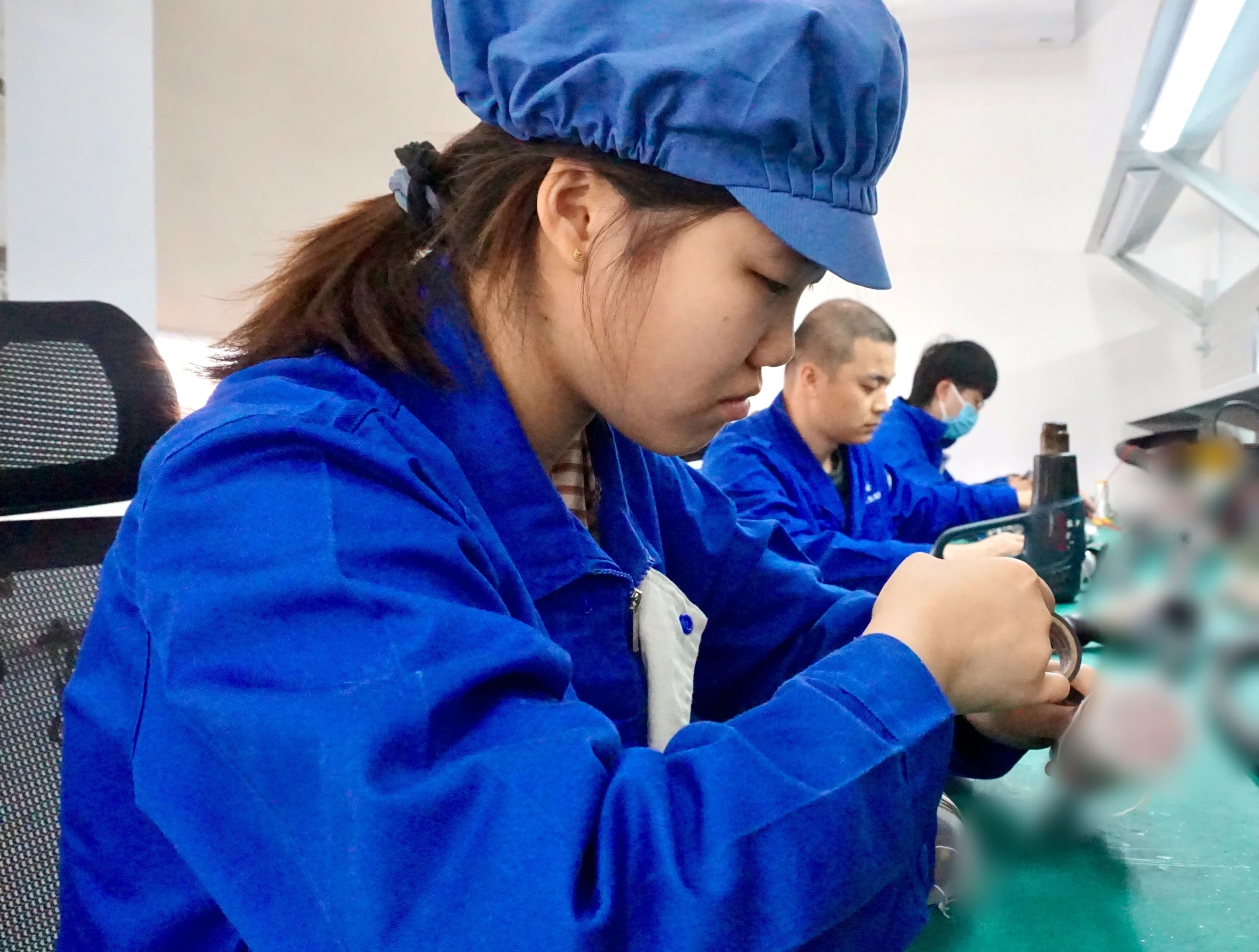 "師傅,我總覺得手有點僵。"她抬頭對我說。我輕拍她肩膀:"熟練了就好了,按標準化作業流程操作,要把每個焊點都當作藝術品對待。"她深吸一口氣,點點頭,更專注地開始了焊接。