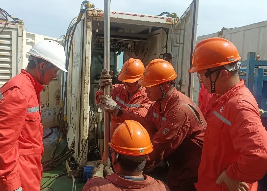 為確保正式施工萬(wàn)無(wú)一失,凱山石油團(tuán)隊(duì)選用與南海平臺(tái)安置的同型拖撬、同長(zhǎng)同性能的電纜進(jìn)行配接,反復(fù)測(cè)試通訊性能,完成精細(xì)準(zhǔn)備。同時(shí),提前協(xié)調(diào)備用儀器調(diào)用,安排市場(chǎng)部人員學(xué)習(xí)相關(guān)技術(shù)原理、現(xiàn)場(chǎng)操作及故障處理方法,做好應(yīng)急處置準(zhǔn)備。