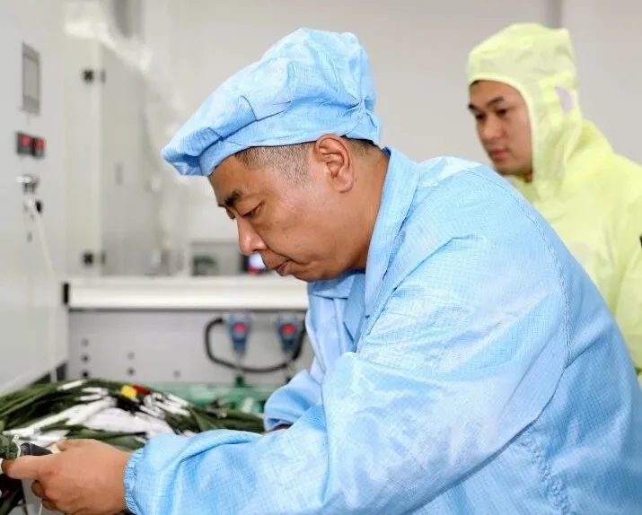 1011日,險峰公司總裝車間測試工老嚴推著一車產品部件來到試驗中心。在一臺無人值守溫循試驗箱前,他停下腳步,與檢驗員小羅默契配合,迅速接好電纜、啟動設備。隨后,兩人放心離開,安心投入其他工作。