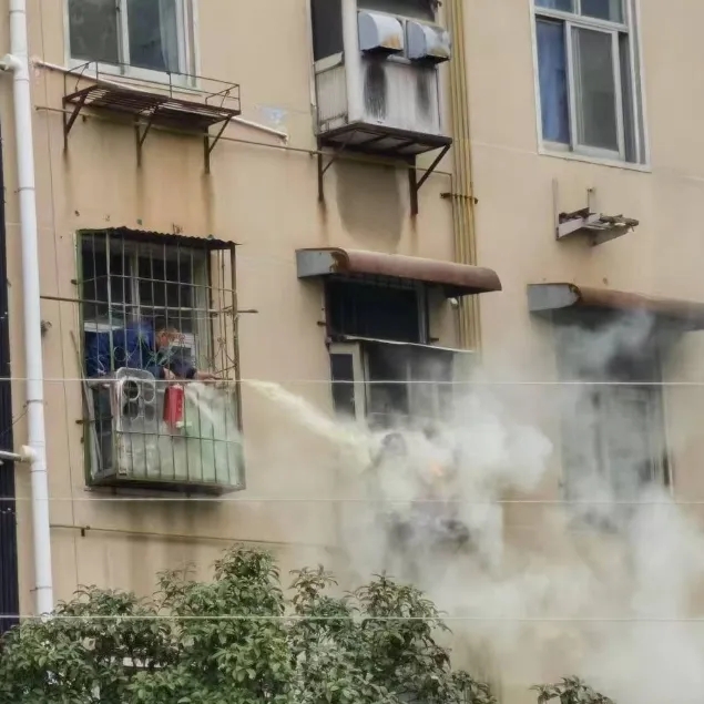 濃煙四散,航天科工九院紅陽公司廠區(qū)與該居民樓僅一墻之隔,運(yùn)輸管理部梁部長(zhǎng)發(fā)現(xiàn)火情后,立刻召集人手。3分鐘內(nèi),8名職工、8瓶干粉滅火器準(zhǔn)備就緒,眾人一同奔赴現(xiàn)場(chǎng)。