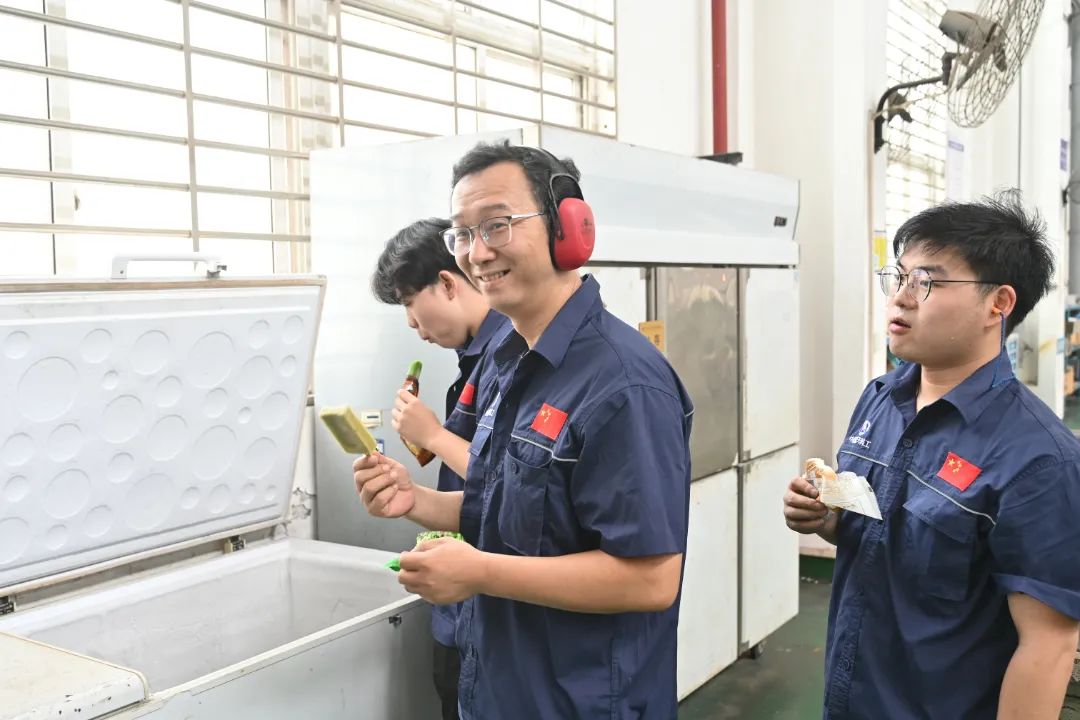 高輝文一行現(xiàn)場詢問各項試驗開展情況,詳細了解各項任務(wù)進展和后續(xù)工作計劃,與項目負責人和作業(yè)人員進行交流,對產(chǎn)品設(shè)計和工藝提出優(yōu)化建議。在試驗廠房,高輝文親切詢問技能人員高溫天氣下的作業(yè)情況,囑咐大家做好個人防護,并送上防暑降溫物資。(圖文/唐詩)